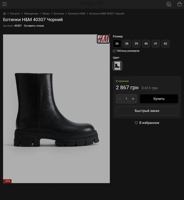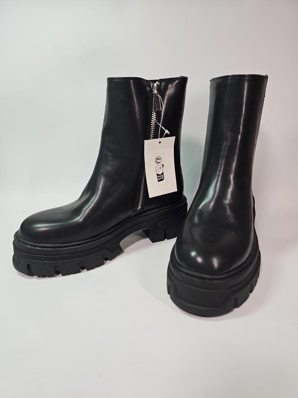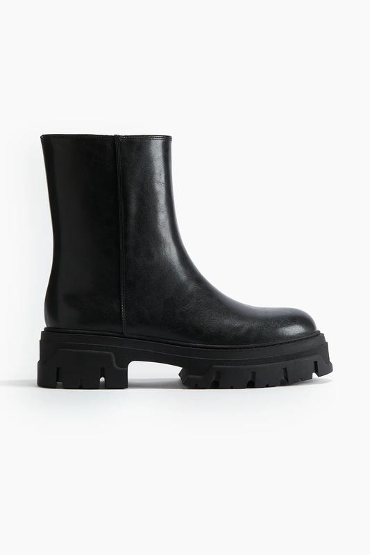 Ботинки женские H&M Chunky ankle boots Состояние — идеальное Размер 36 указан на изделии Ботинки из ткани с полиуритановым покрытием, с закругленными носами и молнией с одной стороны. Подкладка и стелька из джерси, толстая подошва с рисунком снизу. Стелька 23,5 см