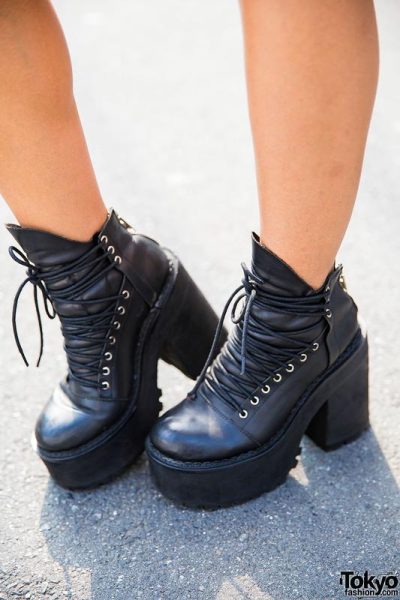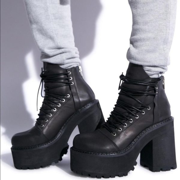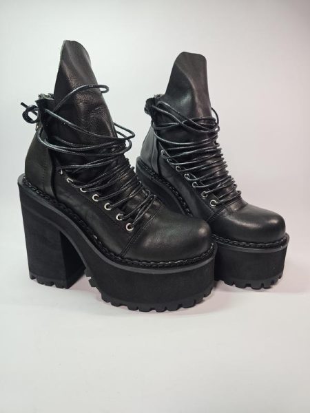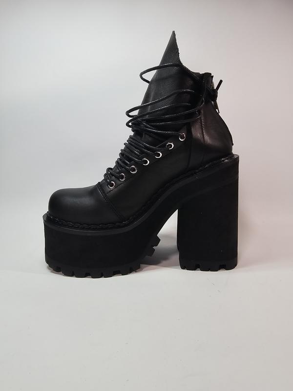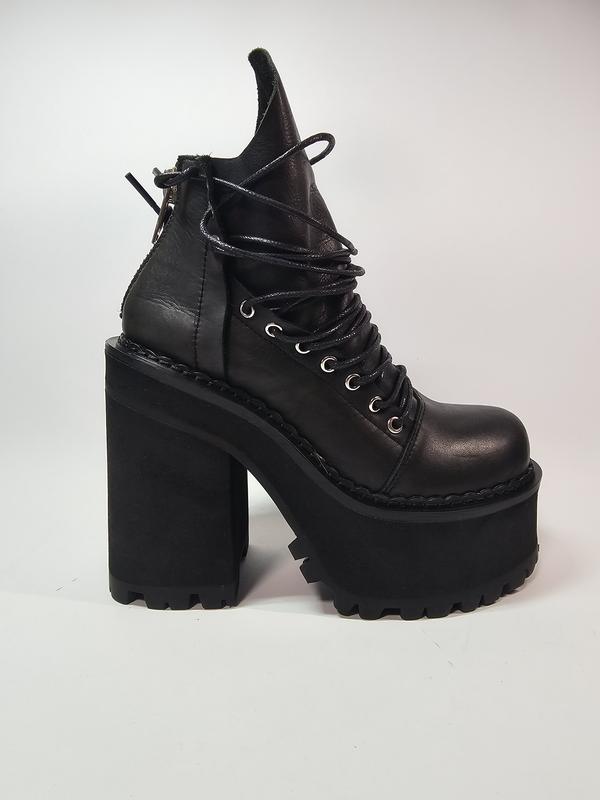 Ботинки женские unif thrash leather ankle boot black platform heel lace up