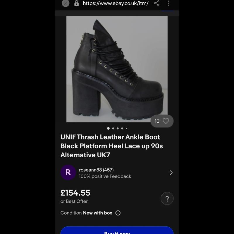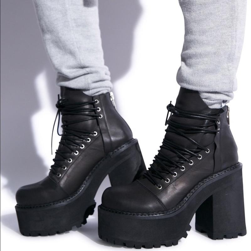 UNIF Thrash Leather Ankle Boot Black Platform Heel Lace up В очень хорошем состоянии Размер US 5 указан на изделии Стелька 22 см Потрясающие ботинки из коллекции UNIF Высота платформы 5 см Высота каблука 12 см