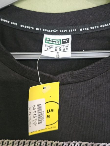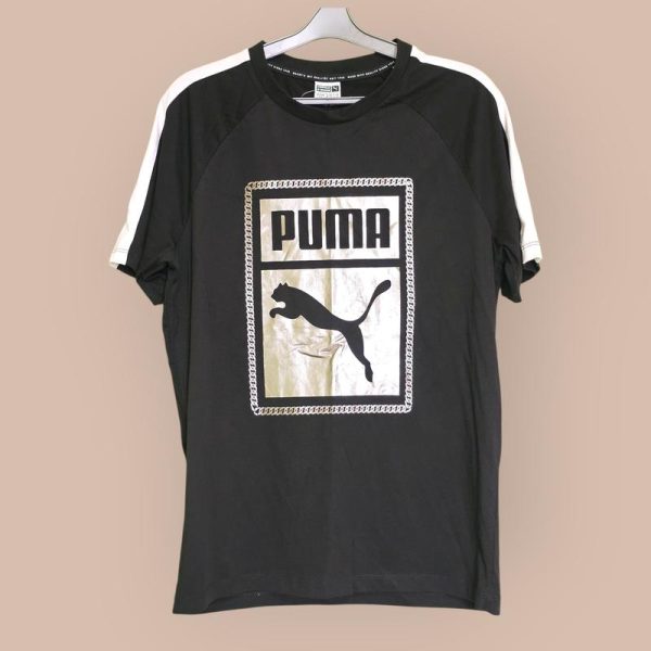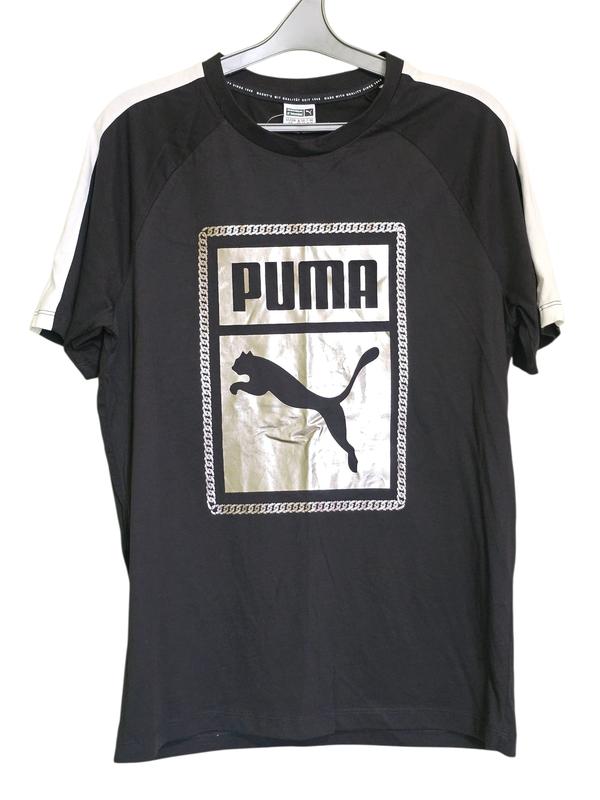 Футболка женская Puma 57742601 Gold Chain Women Raglan Crewneck T Shirt Black White Stripe S Состояние — новое Размер US S указан на изделии Фактический размер M ПОГ 48 см Длина ~68 см