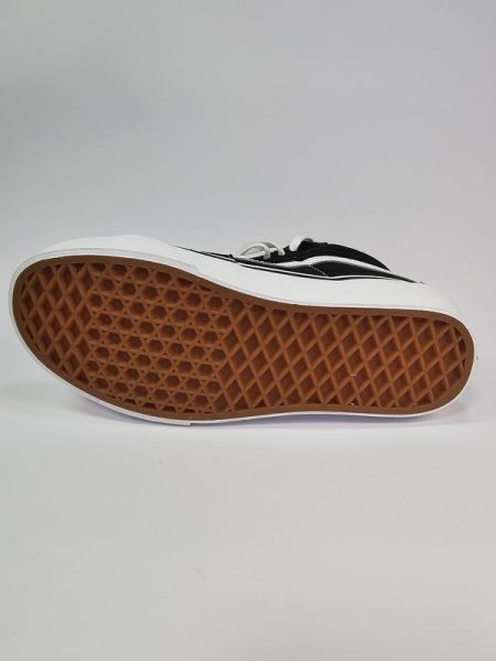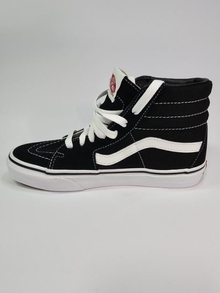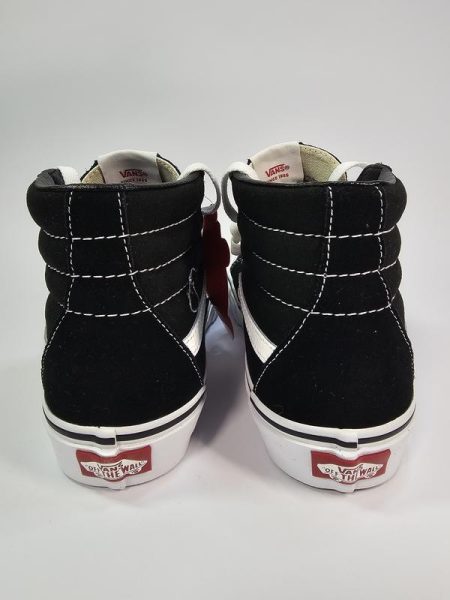 Кеды женские Vans Sk8-Hi Black/White Состояние — новое Размер EUR 36,5 указан на изделии Стелька 23,4 см Модель Sk8-Hi была впервые представлена в 1978 году как «Style 38» и продемонстрировала ставшую теперь культовой боковую полоску на новом, инновационном высоком силуэте Vans. Всего лишь вторая модель с полоской “jazz stripe”, и она уже привнесла совершенно новый облик для Vans. Легендарная высокая модель Vans сделана из натуральной замши с текстильными вставками по бокам, так же имеются мягкие вставки в области пятки и на язычке, для лучшей фиксации ноги и удобства. И все это конечно же на фирменной вафельной подошве. Та самая, классическая черно-белая расцветка, именно с нее все начиналось.