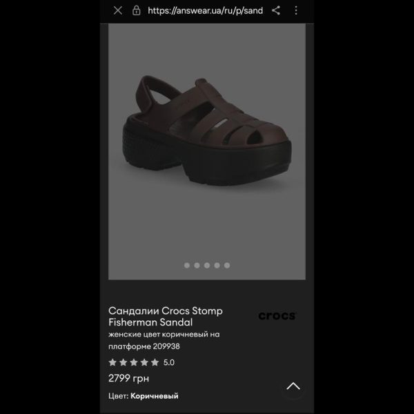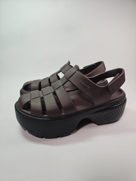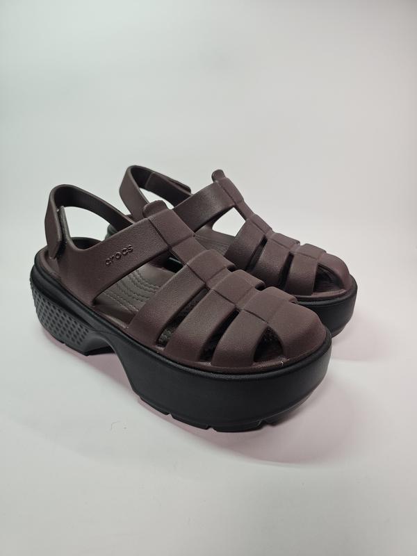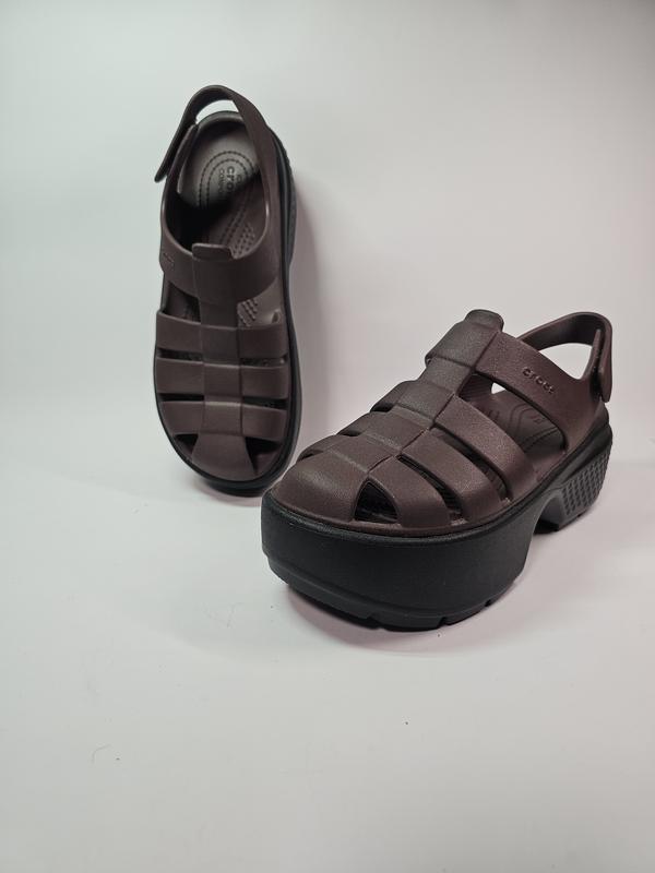 Сандалии Crocs Stomp Fisherman Sandal Состояние — новое Размер W7 указан на изделии Стелька 24 см Сандалии из коллекции Crocs выполнены из синтетического материала. Модель простая в уходе и чистке. — Модель выполнена из материала Croslite™, обеспечивающего легкость обуви и комфорт при ношении. — Круглый, мягкий носок. — Подошва из пены обеспечивает мягкость и дополнительную амортизацию. — Изготовлено из легко моющегося и быстросохнущего материала. — Рифленая внутренняя подкладка предотвращает скольжение стопы внутри. — Благодаря застежке на липучке обувь легко надевать и снимать. — Модель на платформе. — Высота платформы: 7 см.