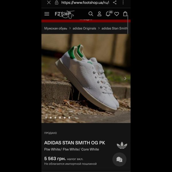 Кроссовки мужские ADIDAS Stan Smith OG PK Состояние — идеальное Размер — US 8 указан на изделии Стелька 26,5 Кроссовки adidas Stan Smith впервые увидели свет в 1973 году, первоначально они были созданы для звезды тенниса по имени, что неудивительно, Стэн Смит. С тех пор они успешно выдержали испытание временем и сегодня выпускаются в мужском и женском вариантах и разнообразных дизайнах, как и положено культовым кроссовкам с низкой посадкой. Чистый дизайн adidas Stan Smith дополняют 3 полоски. Результатом многолетней доработки в сочетании с сохранением традиций стала еще более простая и изящная линия, создавшая одни из самых популярных кроссовок adidas в истории. Благодаря своему происхождению кроссовки adidas Stan Smith изначально доминировали на теннисных кортах. Исключительно там вы найдете их и сегодня, но больше, чем где-либо еще, их можно встретить на городских улицах в качестве элемента повседневной одежды. Отчасти в этом виноват широкий выбор стилей — мужские и, наоборот, чисто женские adidas Stan Smiths стали обычным явлением. Более того, эти легендарные кроссовки стали основой для различных коллабораций с художниками, включая недавнюю совместную работу с Human Made. Так что приобретайте себе эти идеальные белые летние кроссовки, получайте в наследство легенду спорта в виде adidas Stan Smith.
