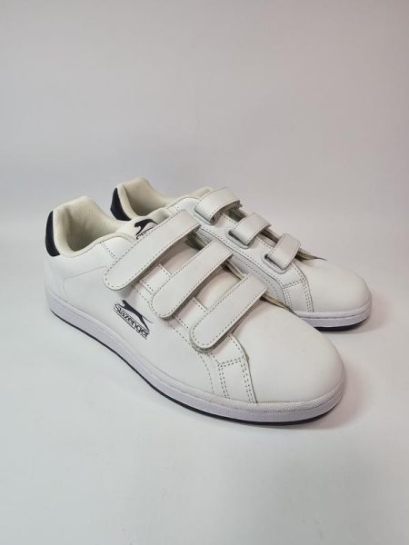 Кроссовки мужские Slazenger Ash Strap Trainers White/Navy В идеальном состоянии Размер 43 указан на изделии Стелька 27,5 см Мужские кроссовки Ash Strap от Slazenger. Кроссовки Ash Strap от Slazenger обеспечивают привлекательный внешний вид благодаря простому дизайну и тройному креплению на липучках, а также мягкому изогнутому вокруг щиколотки воротнику. Завершены брендом Slazenger. Кроссовки Slazenger. Простой дизайн. Тройное крепление на липучках. Мягко изогнутый вокруг щиколотки воротник. Амортизационная стелька. Язык. Прочная, с хорошим сцеплением подошва. Брендинг Slazenger. Верх: Кожа Внутри: текстиль. Подошва: синтетика.