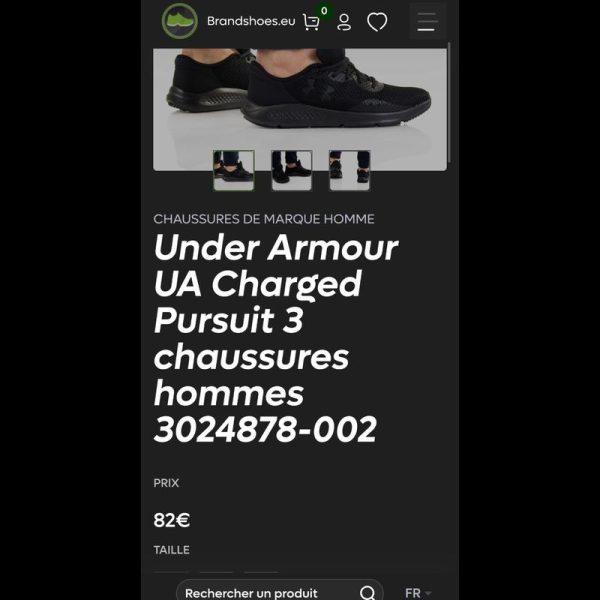 Кроссовки мужские Under Armour UA Charged Pursuit 3 chaussures hommes 3024878-002 Состояние — новое Размер ЕUR 42,5 указан на изделии Фактический размер 41,5 Стелька 26,5 см