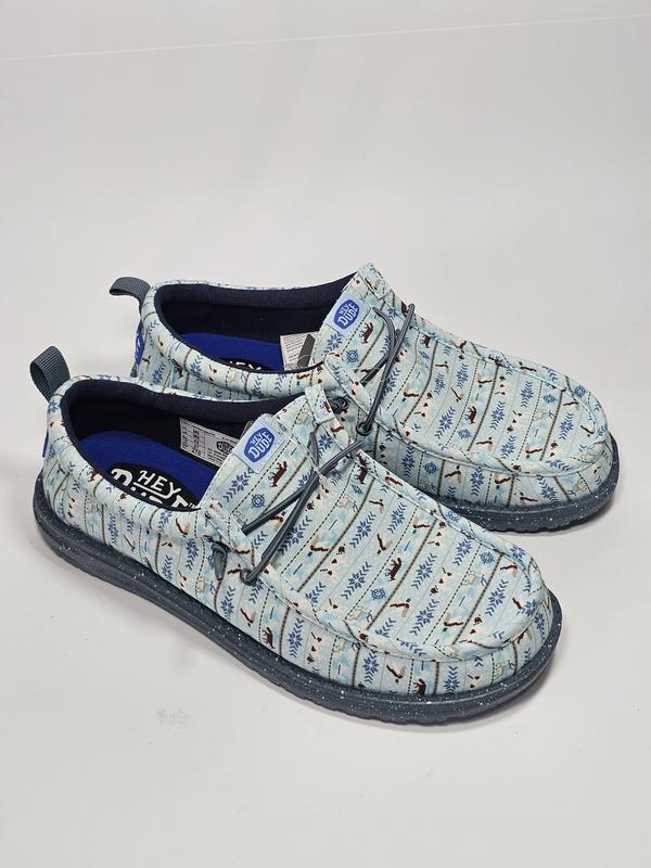 Мокасины мужские HEYDUDE WALLY HUNTMAS SWEATER | Легкие и удобные повседневные туфли В идеальном состоянии Размер EU 42 указан на изделии Стелька 27,4 см Легкость и комфорт: Снеakers из ткани с принтом свитера позволяют вам свободно передвигаться. Удобная посадка: Гибкие шнурки и язычок на пятке обеспечивают легкость в обуви и надежную фиксацию. Амортизирующий комфорт: EVA стелька и мягкая хлопковая подкладка обеспечивают комфорт на протяжении всего дня. Скользящий протектор: Легкая EVA подошва обеспечивает сцепление как внутри, так и на улице.
