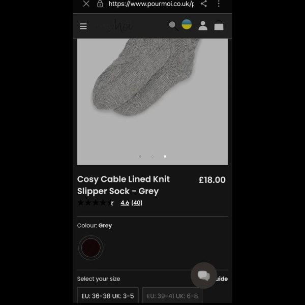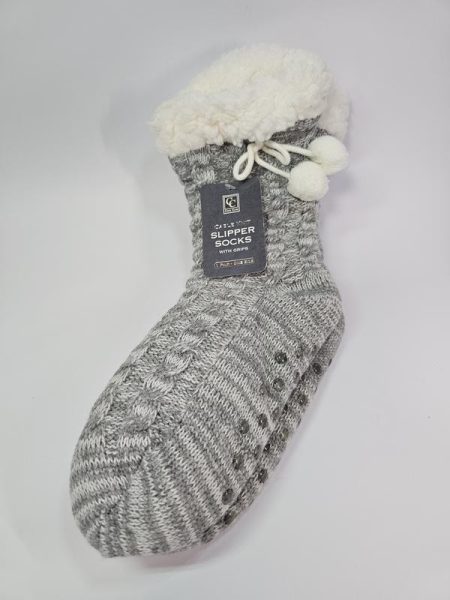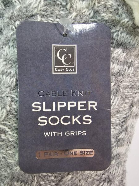 Носки Cosy Cable Knit Slipper Sock — Grey Состояние — новое Размер — one size ~ от 22 см до 25 см длины стопы Материал и вязка: Они выполнены из кабельной вязки (cable knit), что придает им текстурный и теплый вид, ассоциирующийся с домашним уютом. Подкладка: Верхняя часть носков имеет пушистую, мягкую подкладку, которая визуально и тактильно обещает комфорт и тепло. Назначение: Это носки-тапочки (slipper socks), предназначенные для ношения дома, что напрямую связано с ощущением расслабления и уюта в домашней обстановке.