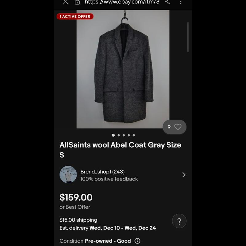 Пальто мужское AllSaints wool Abel Coat Gray Size Состояние идеальное На карманах и ззади на шлице фабричные швы ПОГ 51 см Плечи 45 см Рукав 66 см Длина 100 см