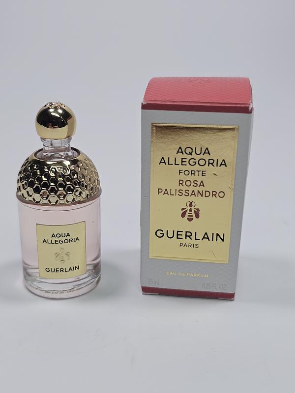 Парфюмированная вода GUERLAIN Aqua Allegoria Forte Rosa Palissandro Обьем 7,5 мл Описание Guerlain Aqua Allegoria Forte Rosa Palissandro ПолУнисекс Аромат, семейство, группамускусный; цветочный; древесный Страна производствоФранція — France Владелец торговой маркиLVMH Год анонса: 2023 Верхние ноты: Кориандр, Альдегиды и Лимон; Средние ноты: Дамасская Роза, Палисандр и Герань; Базовые ноты: Сандал и Пачули. Парфюмер: Delphine Jelk