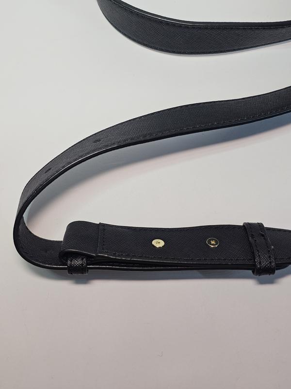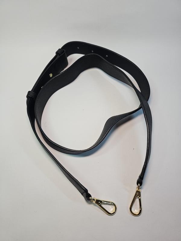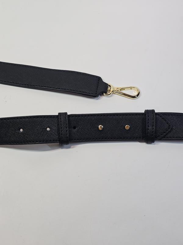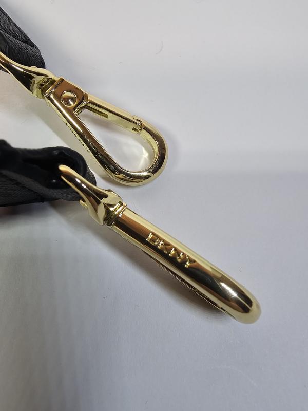 Ремешок на сумку DKNY Черного цвета с золотистой фурнитурой. В идеальном состоянии. Сделан из прочного и легкого материала с характерным текстурным рисунком сделанным методом горячего тиснения, придавая коже устойчивость к царапинам, воде и влаге, с уникальной диагональной текстурой. Длина 105 см + 15 см Ширина 3 см