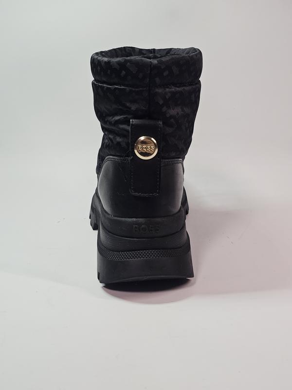 Зимние сапоги женские BOSS Foster цвет чёрный 50523505 Состояние — идеальное Размер 37 Стелька 23,5 см Зимние сапоги из коллекции BOSS выполнены из сочетания текстильного материала и кожи. Модель с мягкой подкладкой обеспечивает мягкость и повышает комфорт. — Утепленная модель. — Верх стягивается шнуровкой. — Резиновая подошва — прочная и устойчивая к повреждениям. — Текстильная внутрення часть создаёт удобство для стопы и облегчает поддерживание обуви в чистоте. — Длина стельки составляет: 23,5 см. .