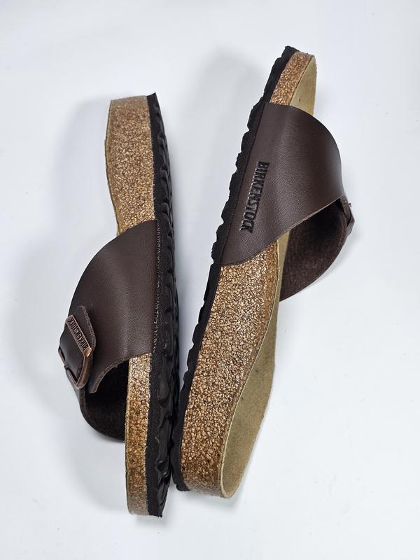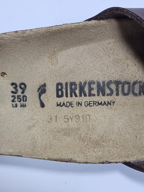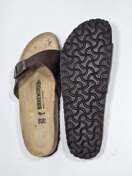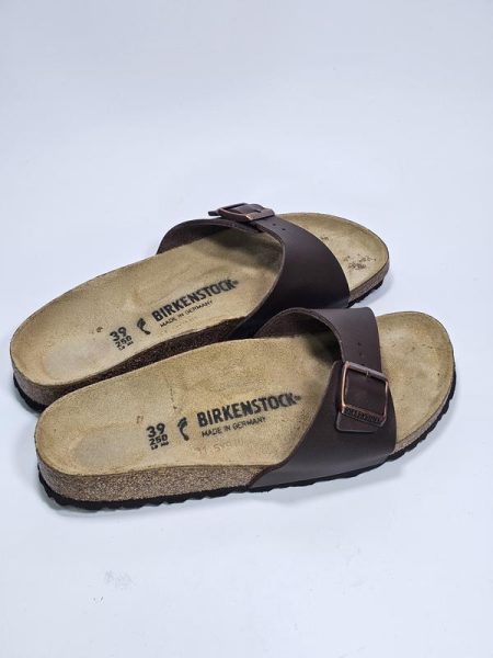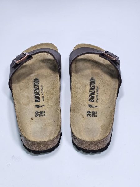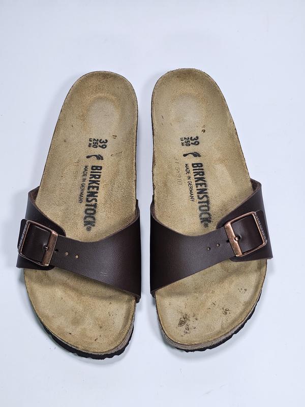 Шлепанцы Birkenstock Madrid женские цвет коричневый 40393 В идеальном состоянии Размер 39 указан на изделии Стелька 25 см Шлепанцы Birkenstock Madrid Шлепанцы из коллекции Birkenstock выполнены из искусственной кожи. — Продукция BIRKENSTOCK производится в рамках экологически безопасного производственного процесса. — Застежка на пряжку с булавкой обеспечивает индивидуальную посадку. — Оригинальная стелька BIRKENSTOCK благодаря особому профилированию обеспечивает стопам высочайшего уровня комфорт в течение многих часов. — Подошва из пены делает обувь легкой. — Длина стельки составляет: 25 см. — Параметры указаны для размера: 39.
