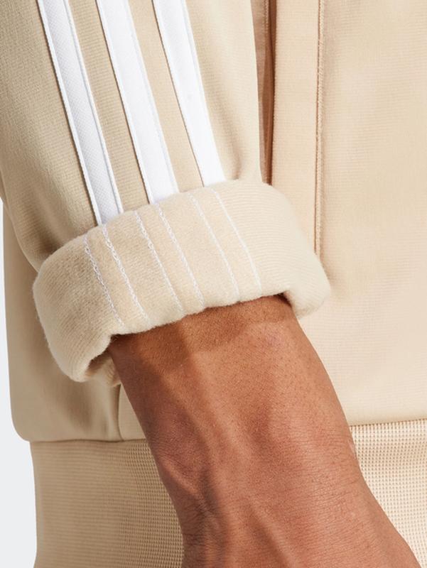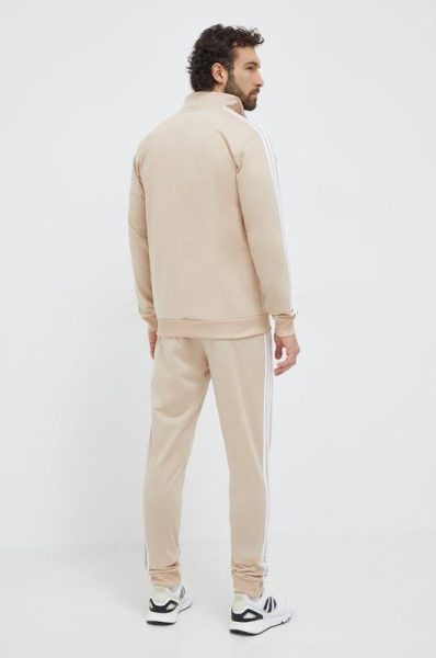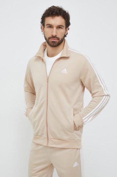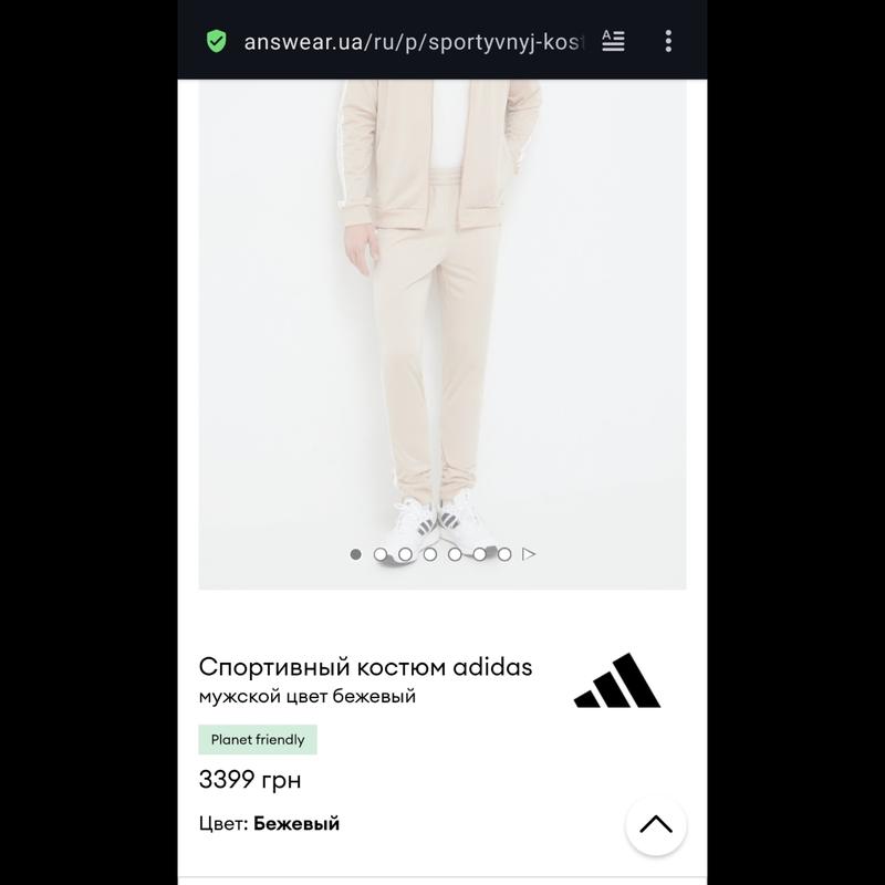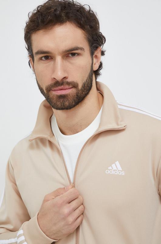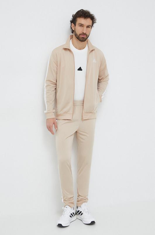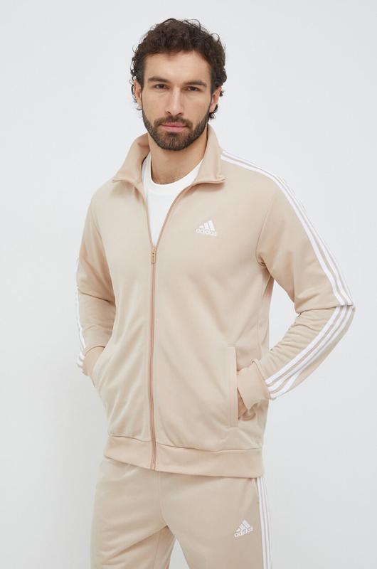 Спортивный костюм adidas мужской цвет бежевый Состояние — новое Размер L Спортивный комплект из коллекции adidas выполнен из эластичного трикотажа. Продукт содержит переработанные волокнистые материалы. — Простой фасон, не стеснящий движений. — Застегивается на молнию. — Два накладных боковых кармана. — Рукава и нижний край отделаны удобной эластичной резинкой. — На поясе есть эластичная резинка и дополнительная внутренняя регулировка ширины с помощью шнурков. Кофта- Штанины на резинках. — Длина рукава: 66 см. — Длина: 72 см. — Ширина под подмышками: 59 см. — Ширина по низу: 52 см. Штаны- Полуобхват талии: 40 см. — Ширина штанины снизу: 15 см. — Ширина штанины сверху: 34 см. — Внешняя длина штанины: 103 см. — Параметры указаны для размера: L Код производителя: IR8204